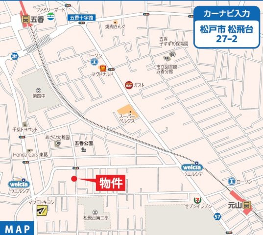 京成電鉄松戸線「五香」駅 徒歩9分 京成電鉄松戸線「元山」駅 徒歩9分 北総鉄道「松飛台」駅 |