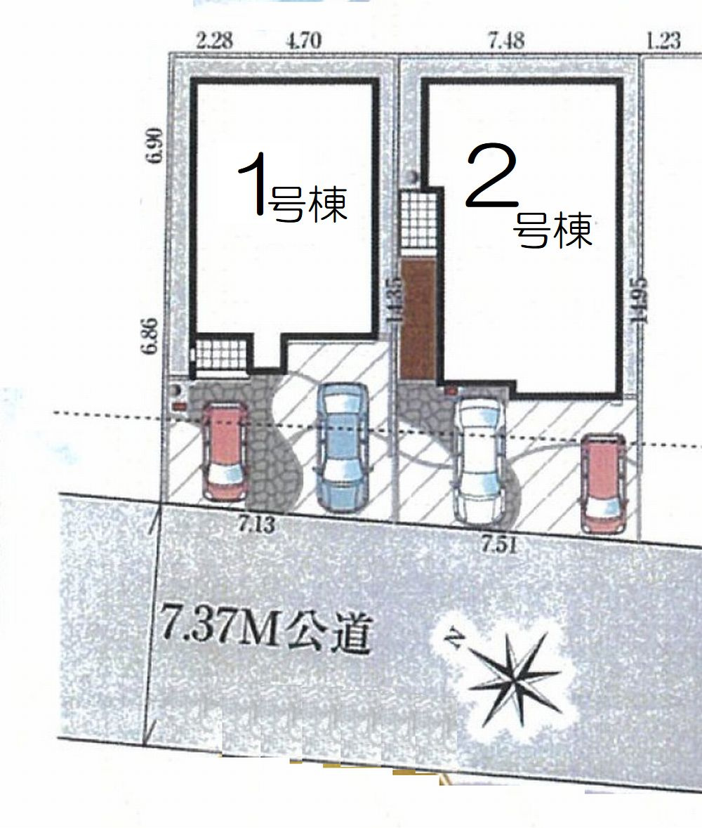 2台並列駐車可能、車庫入れスムーズ、周辺交通量少なめ。