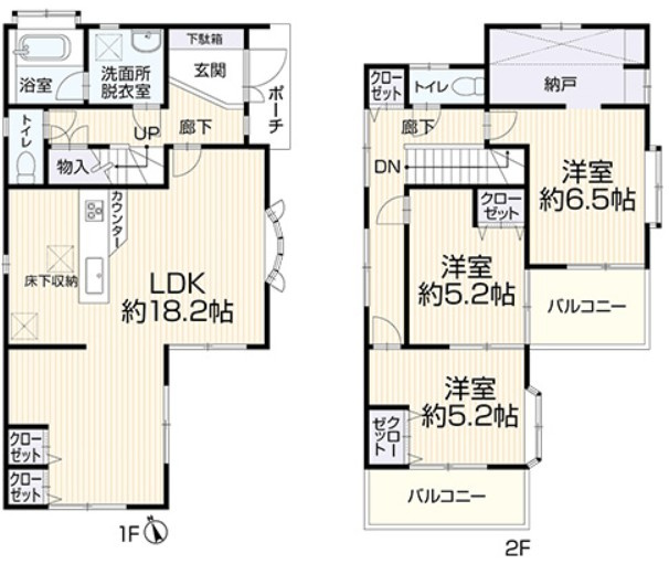 LDK 18.2帖 1室 / 洋室 5.2帖 2室 / 洋室 6.5帖 1室 / |