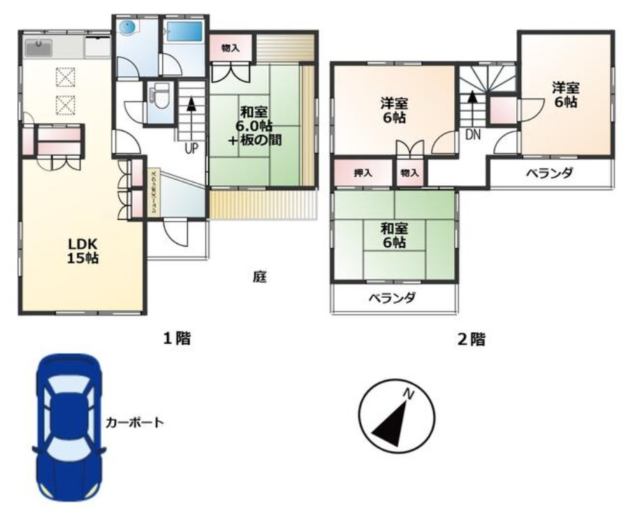 LDK 15.0帖 / 和室 6.0帖 / 和室 6.0帖 / 洋室 6.0帖 / 洋室 6.0帖 / |