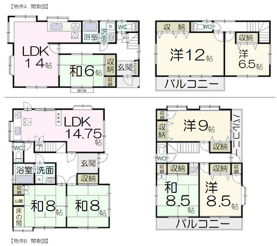 LDK 13.7帖 1室 / 和室 8.0帖 2室 / 洋室 8.5帖 2室 / 洋室 9.0帖 1室 / |