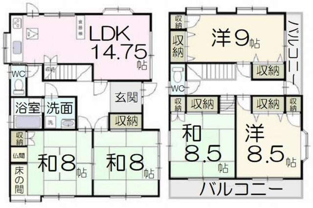 LDK 13.7帖 1室 / 和室 8.0帖 2室 / 洋室 8.5帖 1室 / 洋室 8.5帖 1室 / 洋室 9.0帖 1室 / |