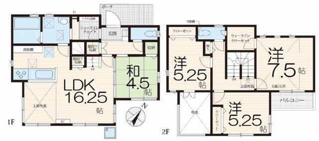 LDK 16.2帖 1室 / 和室 4.5帖 1室 / 洋室 7.5帖 1室 / 洋室 5.2帖 2室 / |