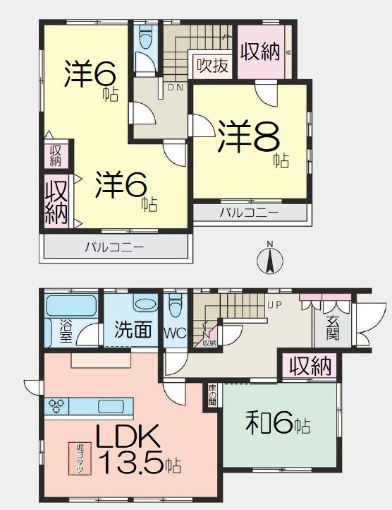LDK 13.5帖 1室 / 和室 6.0帖 1室 / 洋室 12.0帖 1室 / 洋室 8.0帖 1室 / S(納戸) 2.0帖 1室 / |