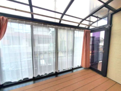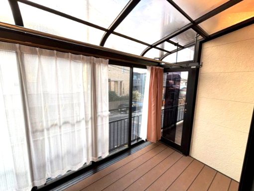 今日すぐ見学できる 雨の日・花粉の日・黄砂の日に大活躍、南側に屋根付きワイドバルコニー まるで梅雨の時期も、いつもどおりのお洗濯 全室南向き 全室6帖以上 風通しの良い、南西道路